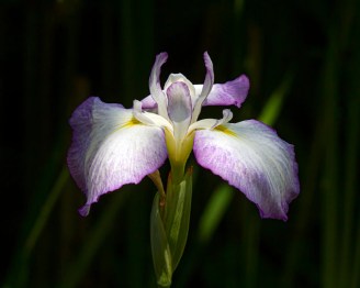 I was struck by the beauty of the Japanese Water Irises (Iris ensata) that I observed during a visit in early June to Lewis Ginter Botanical Garden with fellow photographer Cindy Dyer. Most of the irises, however, were either in the bright sunlight or in the deep shadows. I was delighted when I spotted one flower that was partially illuminated by the sun in a way that made it pop out of the shadows.